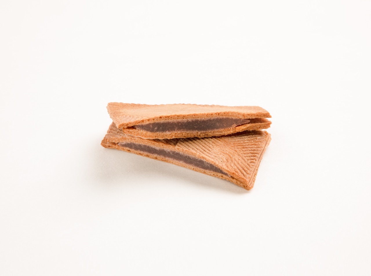 ゴマと黒糖の香ばしい薄焼きせんべいに特製餡をはさんだ、しっとりとした焼菓子